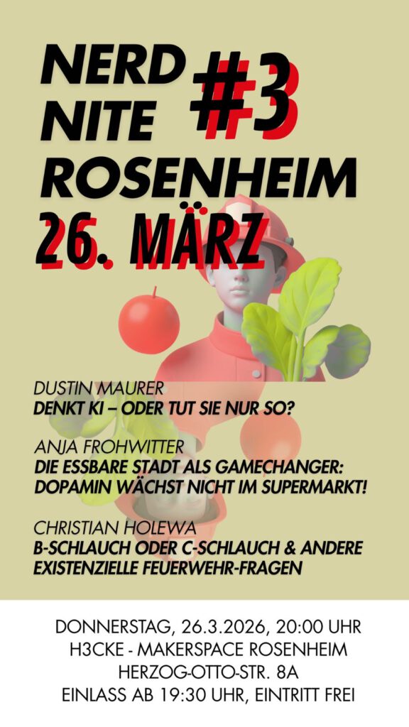 Die Nerd Nite Rosenheim geht in die dritte Runde – diesmal im H3CKE Makerspace.